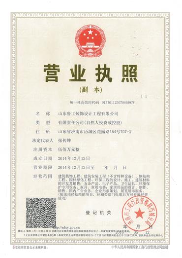 山東魯工裝飾設計工程有限公司是一家專業從事辦公樓、商業、廠房、學校、展廳等裝飾設計與施工為一體的優秀工裝企業。 公司擁有資質:建筑裝修裝飾工程承包貳級,建筑裝修裝飾設計乙級。 公司擅長辦公商業類的裝飾裝修、辦公家具、軟裝配飾、中央空調與消防改造報審等綜合性設計、施工和管理。
